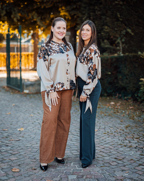 Grijsblauwe geklede broek met rechte pijp en riempje in de taille. Karolien draagt maat 34. Valt niet zo groot in de taille. Mooi gecombineerd met onze Jannike blouse.