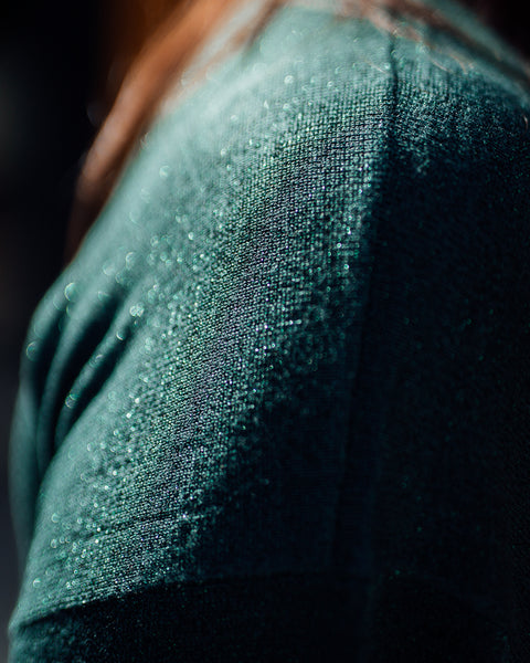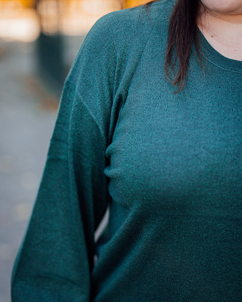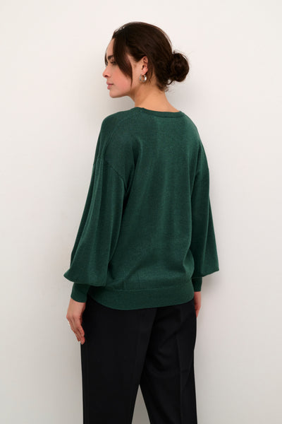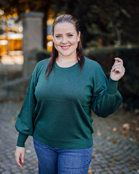 Dun lurex pulletje met lange mouw. Silke draagt maat L.