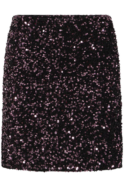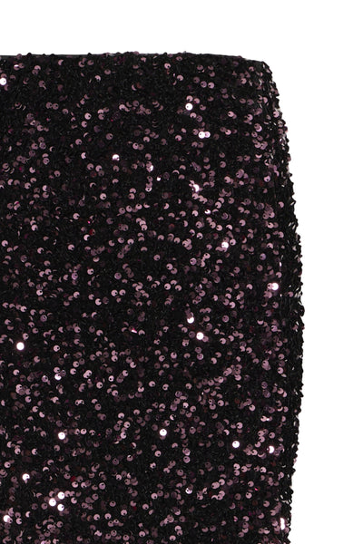 Paillettenrokje op elastiek in een mooie bordeauxpaarse kleur. Tof met ozne Perlina velvet bloesje in dezelfde kleur. Larissa draagt maat M.